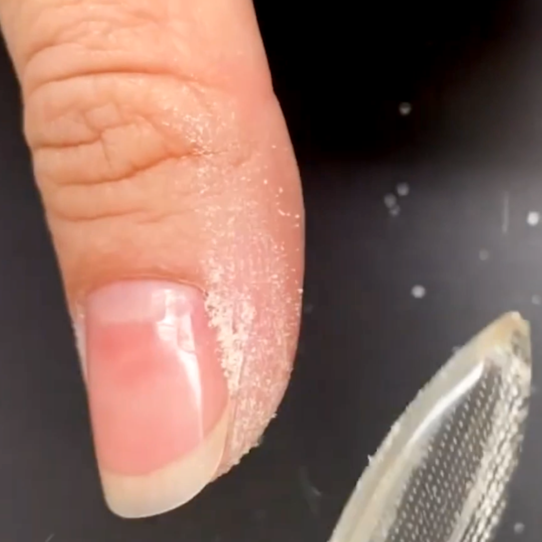 File until the area is soft smooth and free from callus. File Dry = powder/dust. File Wet = soaked dead skin.