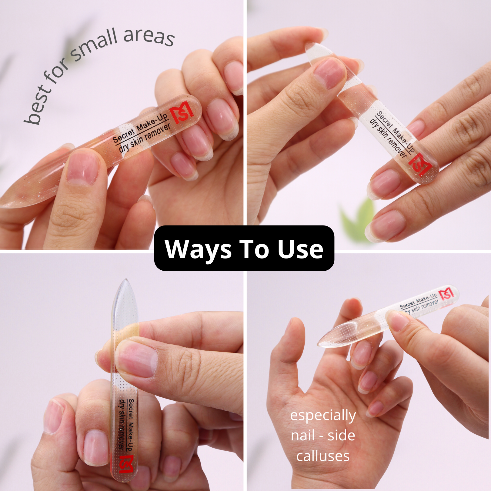 Dry Skin Remover is an easy & hassle-free nail tool designed exclusively by Secret Make-Up. Just slightly file the Dry Skin Remover on the areas you want to remove dry dead skin - it will come right off like dust! Even in the small hard to reach areas, we got you!